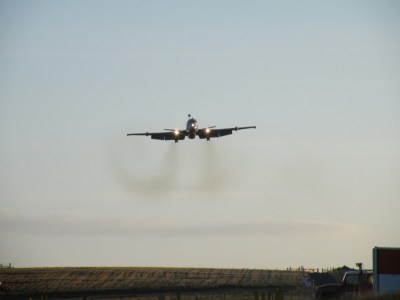 I made sure my batteries were all charged in my cameras and was at work in good time to prepare for this exciting event. I had never seen an R1 before so with the help of the new Airport Manager, Davie Berston and the new Airport Fire Manager, Graeme King, I managed to get myself in a prime possition in time for the approach.